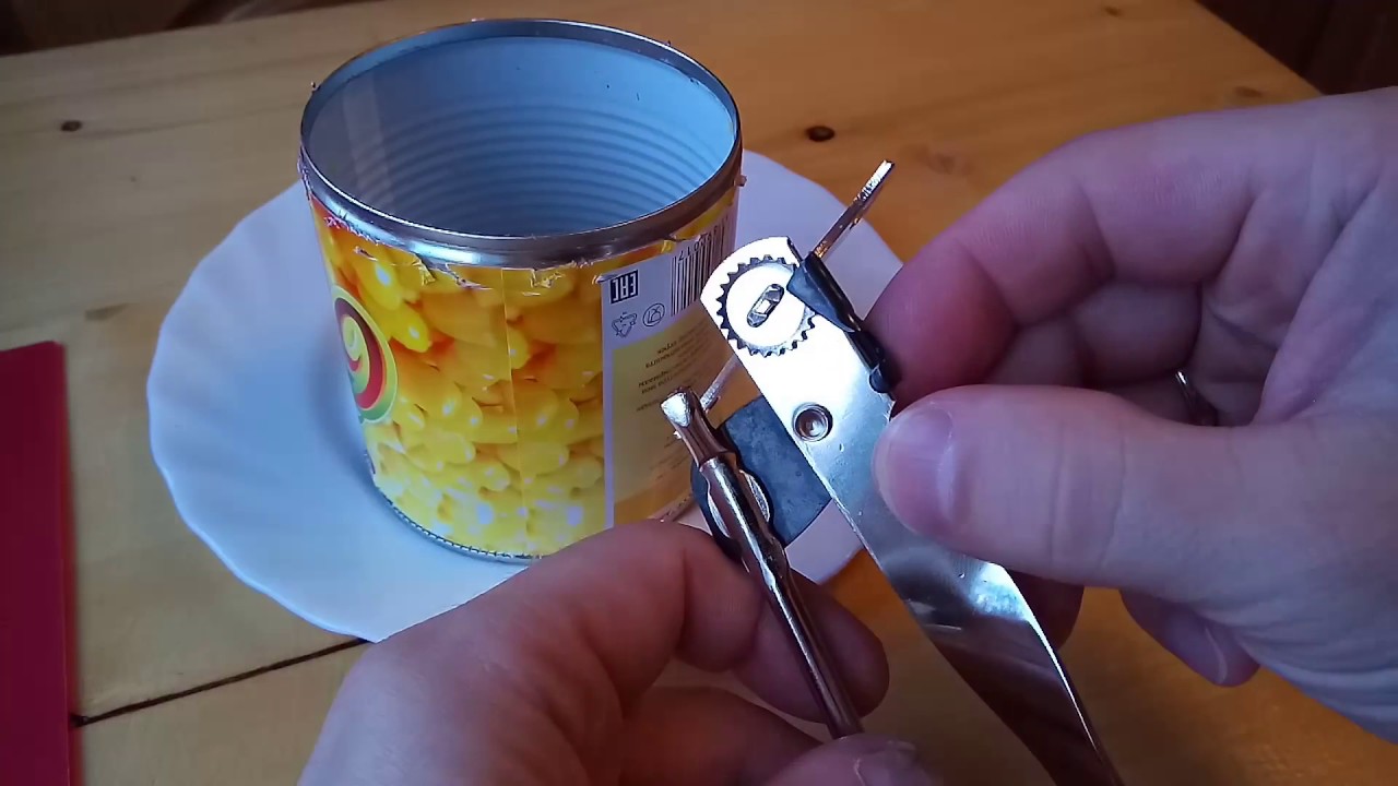 По аналогии можно вскрыть консервированную кукурузу или тушенку. Можно упростить задачу и использовать другой способ, но уже со специальным приспособлением. Рассмотрим как открыть консервную банку открывалкой с колесиком.