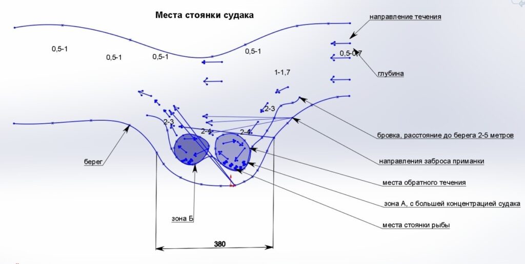 Для рыбалки на искусственные приманки, первым делом, необходимо правильно выбрать место. Судака следует искать на участках водоёма, где есть существенные перепады глубин и водовороты.
