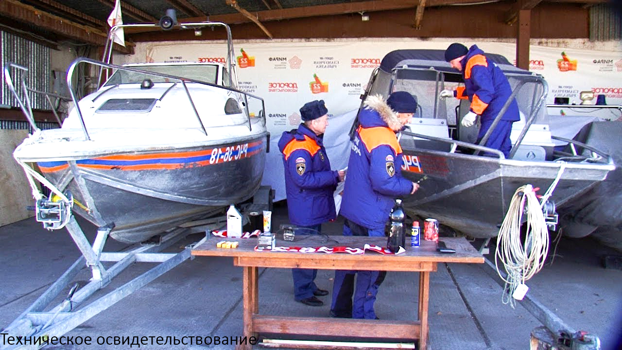 Сотрудник ГИМС проводит обследование судна на суше и на плаву, определяет, движок какой мощности установлен на лодке. Инспектор проверяет характеристики мотора на передней, задней передачах и т. д. Составляет акт технического освидетельствования, который необходимо передать с заявлением в ГИМС. В судовом билете должны поставить штамп о прохождении техосмотра. После выдачи билета на судне закрепляется бортовой номер.