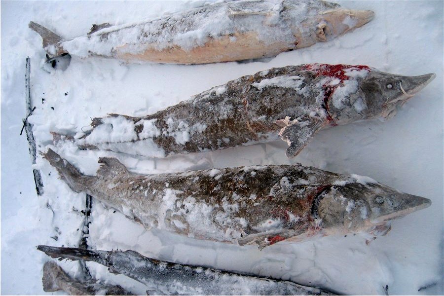 Ходовая (остроносая) стерлядь, выловленная в Волге Стерлядка — улов Окская стерлядь Рыло стерляди Отличный улов — фото из Канады