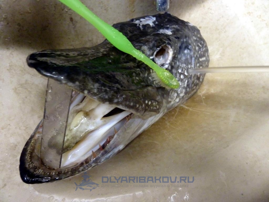По истечению этого времени, как можно тщательнее промойте голову – вы должны с нее удалить все соль и прочие, ненужные субстанции. При промывке нужно удалить слизь, которая образовывается между зубами щуки, но руками выполнять этот процесс не стоит, поскольку зубы у щуки острые, и вы поранитесь. Такие раны заживают очень долго. Поэтому рекомендуется использовать зубную щетку.