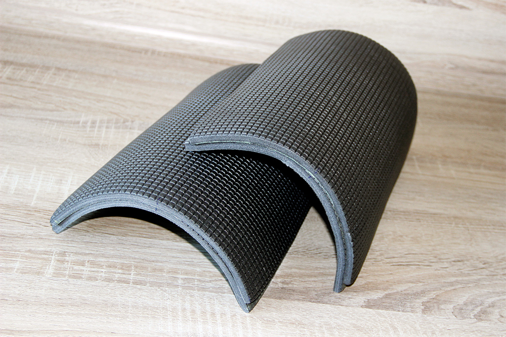 - Специальный дизайн. Наколенники для рабочих изготовлены так, что их поверхность рельефная, это позволяет предотвратить скольжение колена.