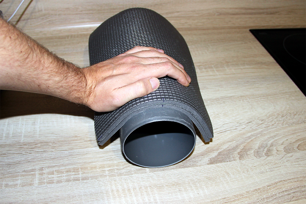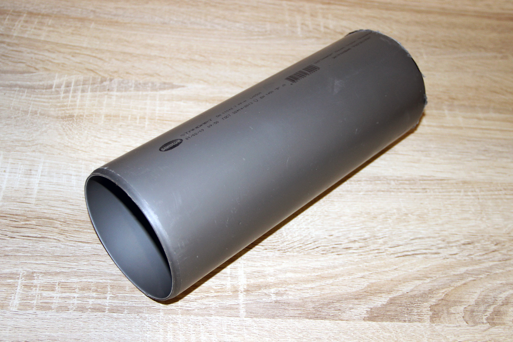 Далее нам понадобится некий предмет цилиндрической формы, с примерным диаметром 120 мм. Самый подходящий цилиндр у меня оказался отрезок трубы после прокладки канализации D-110мм.