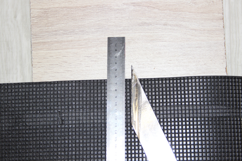 Для начала нужно разметить наш коврик на прямоугольники размером около 200х300 мм, с расчетом 5-6 слоёв на один наколенник. Затем вырезаем по разметке.