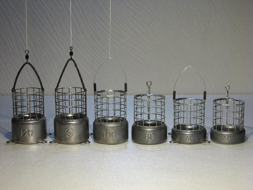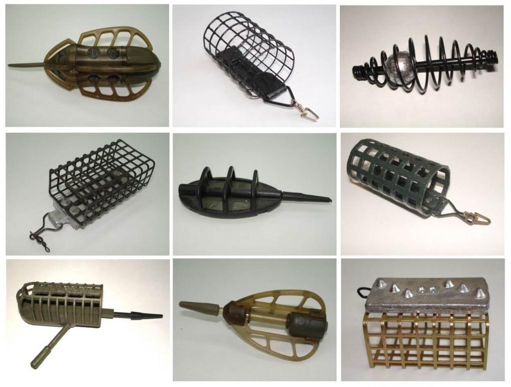 Устройство кормушки фидера на первый взгляд простое – сетка и грузило. Однако, в этой простоте зарыто множество нюансов. Клетки различаются по весу, кормоемкости, форме, скорости вымывания корма. У фидериста должен быть целый набор различных кормаков, применяемых в зависимости от условий ловли, водоема и вида рыбы. Подробнее – кормушки для фидерной оснастки. Прицепить кормушку фидера можно десятком различных способов. Все зависит от выбранной схемы фидерной оснастки с кормушкой.