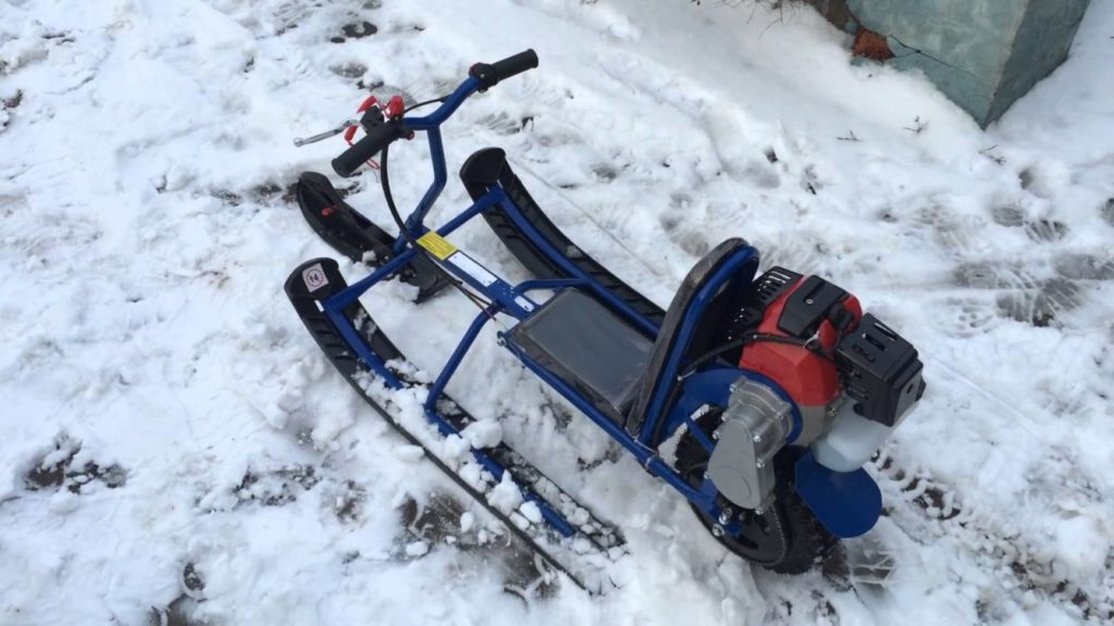 Если есть желание сделать снегоход для ребенка, то не стоит использовать мощный двигатель. Самоделку нужно создавать в соответствии с возрастом, весом и ростом ребенка.