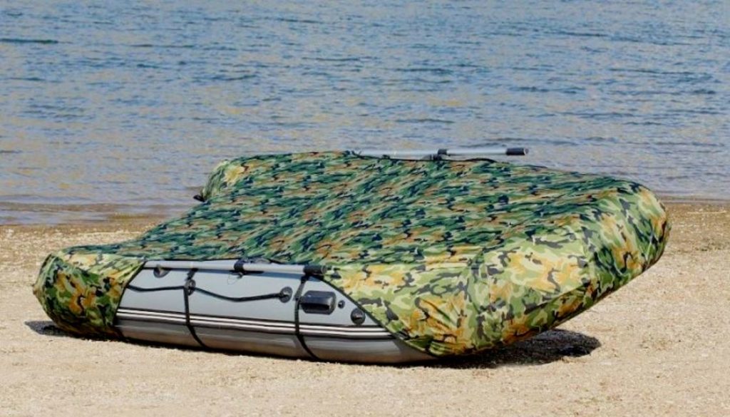 При изготовлении такого тента используется водонепроницаемый плотный материал, который полностью без особых усилий накрывает весь периметр лодки. Изготовляется в серых или зеленых тонах приоритетом.