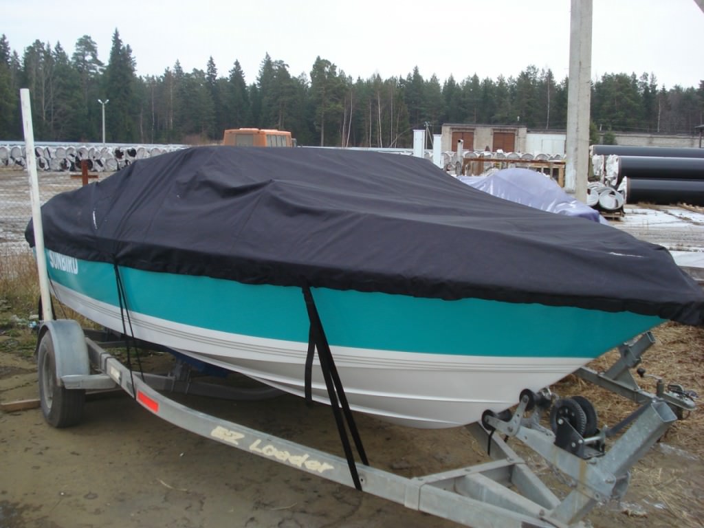 Это полотно характеризуется наличием повышенного коэффициента износоустойчивости и стойкости к разрывным нагрузкам. Материя не боится влаги, солнечных лучей и агрессивных моющих средств. Вес полотна составляет 4650 г. Для фиксации понадобятся шнуры и ремни, которые поставляются в комплекте. Отличное решение для владельца лодки длиной 360 см и шириной не более 175 см.