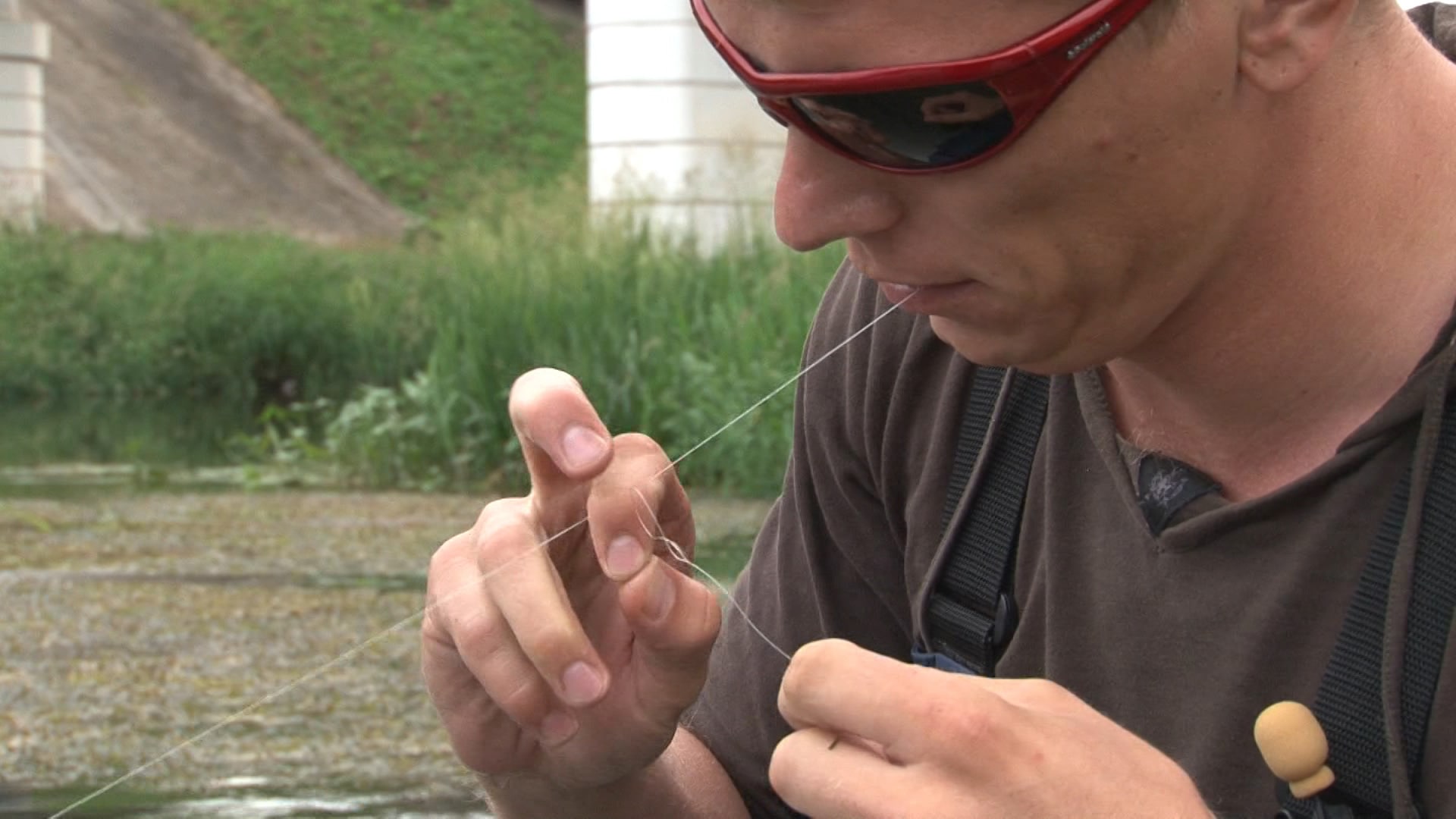 - вследствие неудачного заброса оборвалась нить, и нужно связать куски лески между собой временным узлом;