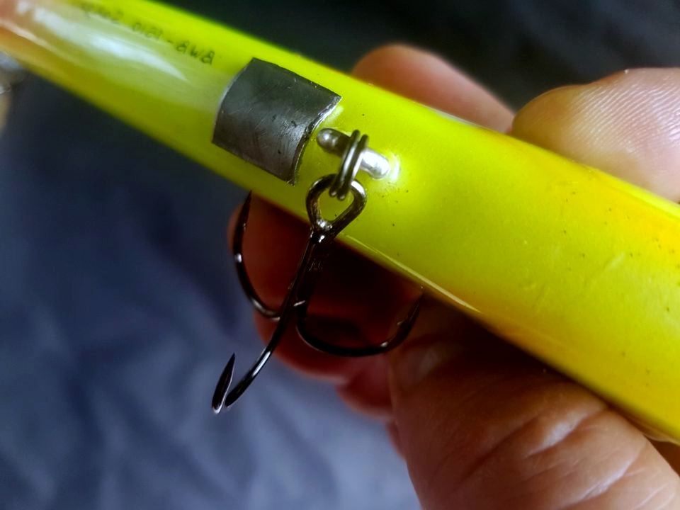 Но рыбаки видят в таком способе несколько недостатков и считают его менее желательным, чем смену крючков. Установка больших заводных колечек приводит к тому, что тройники цепляются к леске или самому муляжу. Поэтому способ хотя и рабочий, но применяется только в крайних случаях.