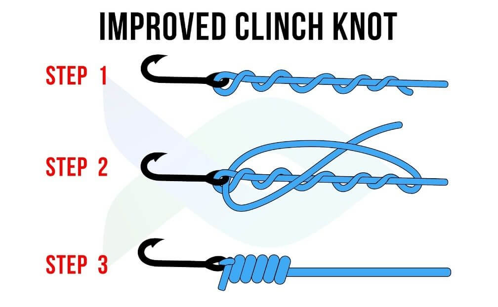 Для того чтобы привязать леску к крючку с помощью узла Улучшенный Клинч, выполните следующие действия: