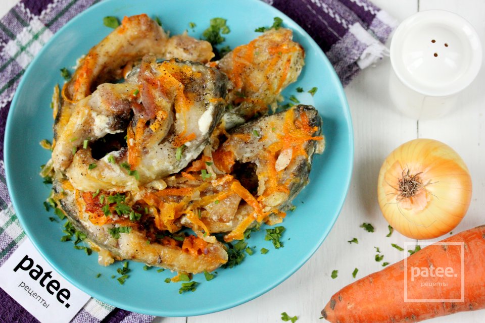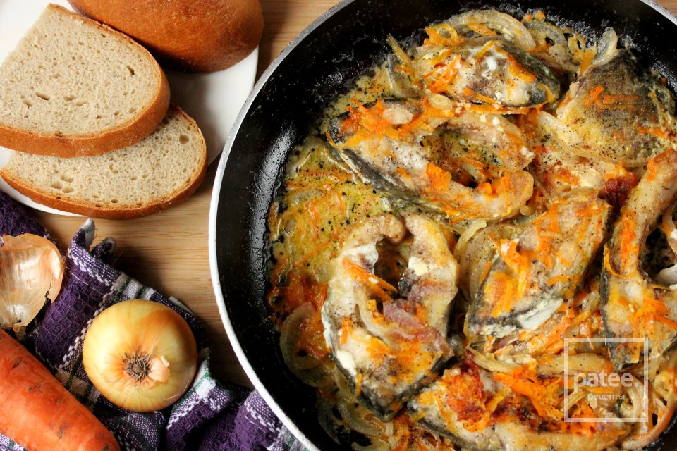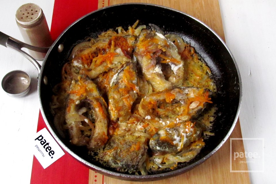 Рыба с луком и морковью в сметане готова.