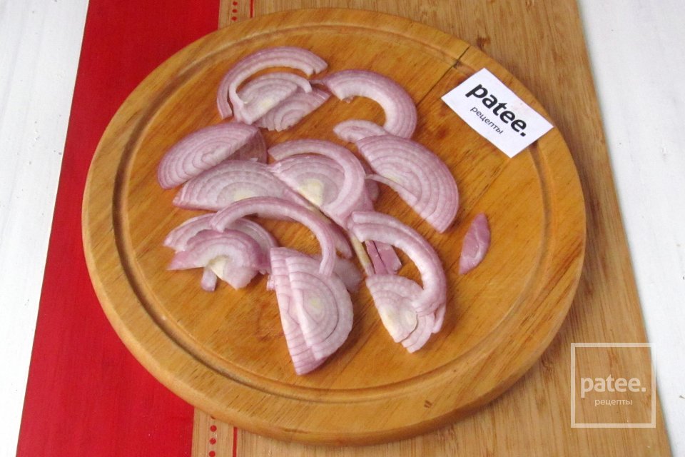 Лук чистим, нарезаем полукольцами.