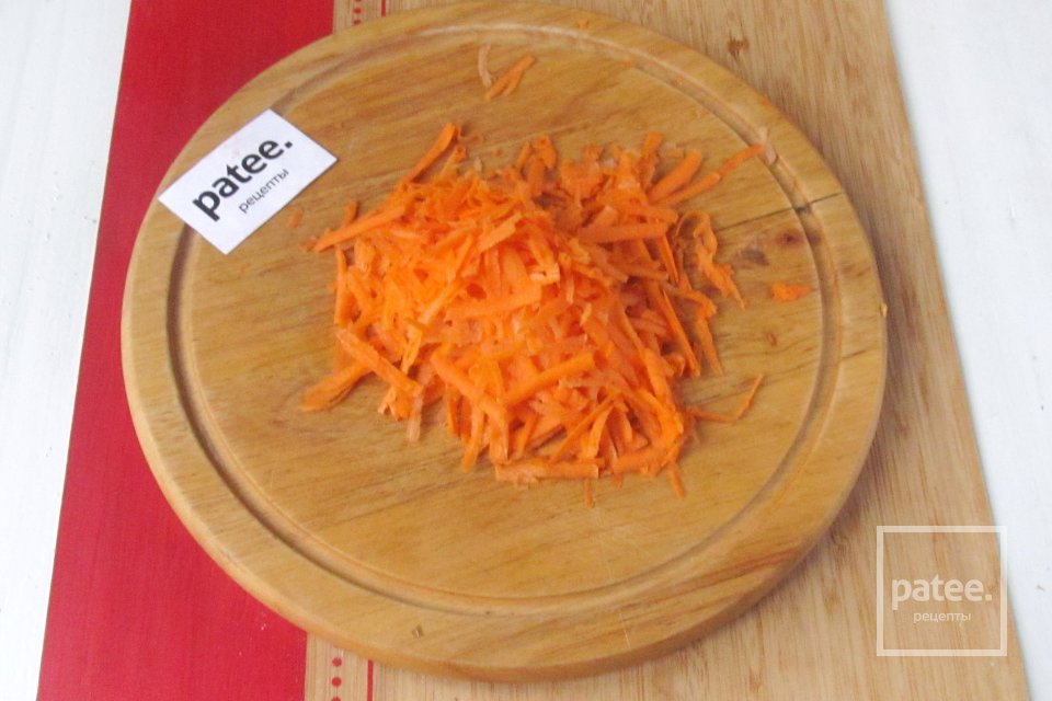 Пока рыба жарится, морковь чистим и натираем на крупной тёрке.