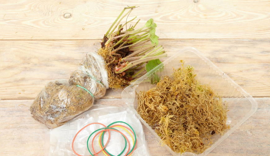 Хранение луковиц или черенков в сфагнуме обеспечивает их сохранность, создавая оптимальный баланс влаги. Мох поглощает воду из слишком влажной среды, а при необходимости компенсирует излишнюю сухость воздуха.