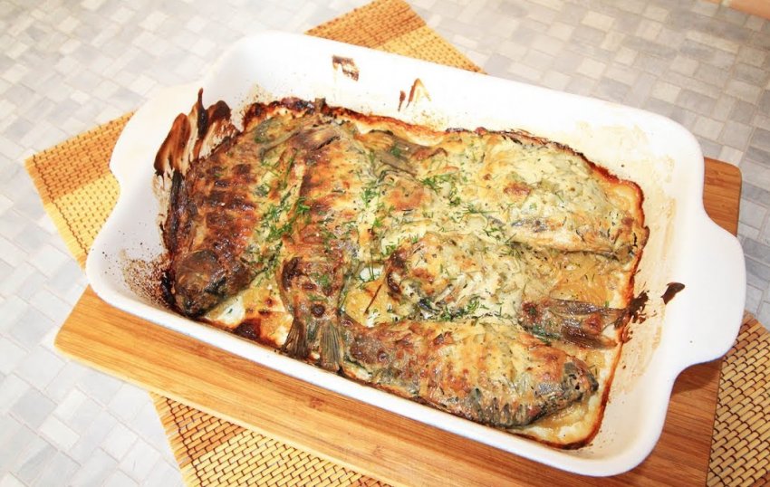 Часто кулинары-любители запекают карасей с картофелем, морковью и луком. Добавьте сюда еще немного сметанной подливки, и потрясающий нежный вкус блюда покорит ваше сердце и желудок.