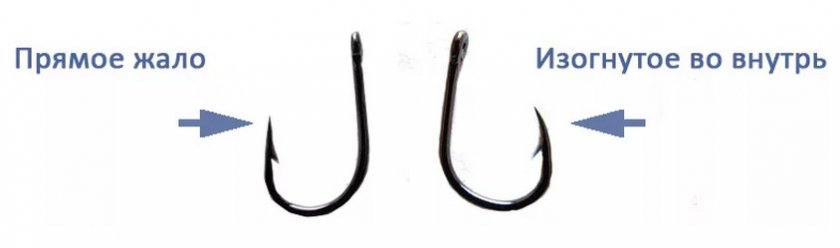 Они также могут отличаться своей формой: бывают прямые и изогнутые. Последние обеспечивают быструю подсечку за счёт практически моментального поворота крючка во рту рыбины.