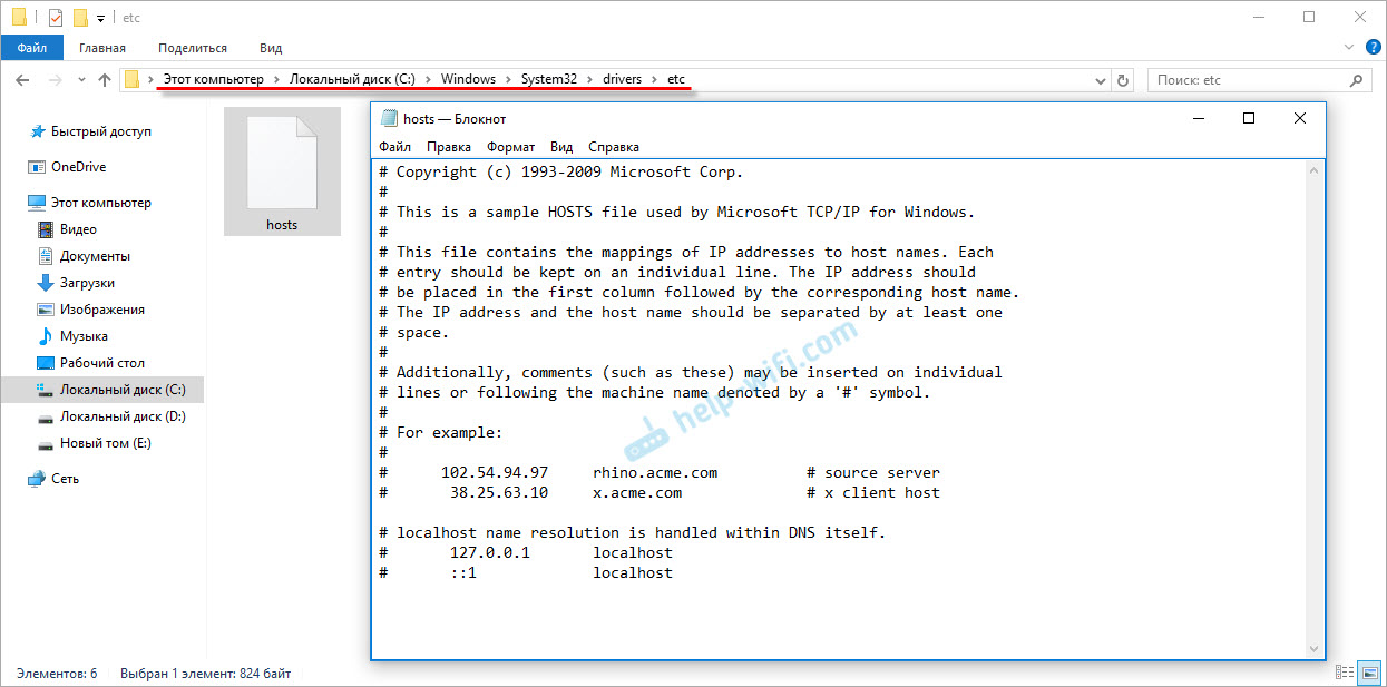 В проводнике перейдите по адресу C:\Windows\System32\drivers\etc. Можно просто скопировать этот путь и вставить в проводник. Дальше откройте файл hosts через блокнот.