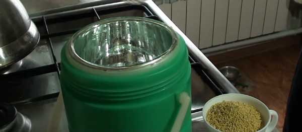 - Засыпать в термос 200 г пшена.