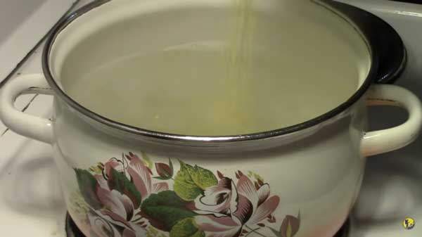 - Налить в кастрюлю 4 литра воды и довести до кипения.