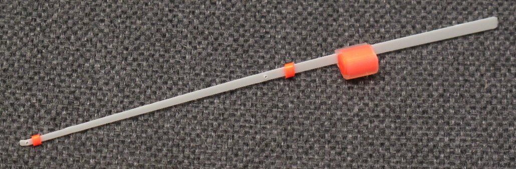 Леска должна быть пропущена там, где вставляется пластина сторожка, или можно приклеить дополнительный кембрик. Двужильный кабель удобен тем, что сразу имеет два отверстия.