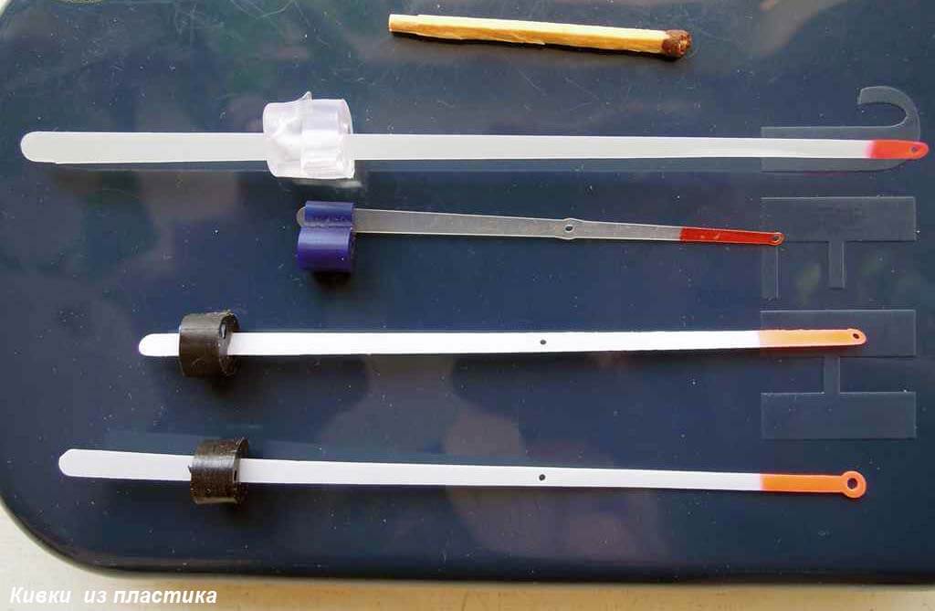 - Леска. Ранее, в отсутствии нужных материалов, для изготовления кивков иногда использовалась толстая леска. Лесочные кивки сейчас почти не применяются.