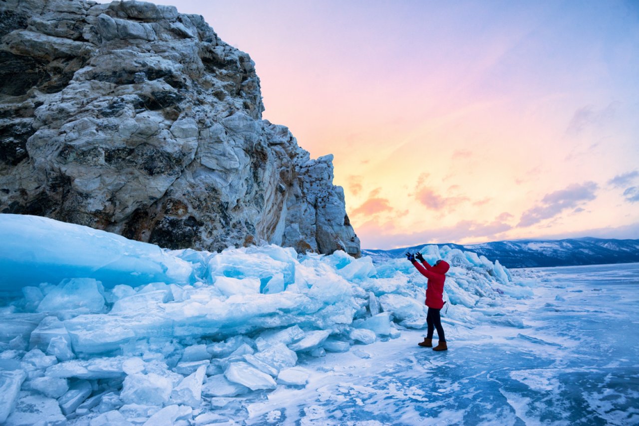 Остров Ольхон и Малое Море. Пролив между материковой частью Иркутской области и вытянутого вдоль берега острова Ольхон называют Малым Морем. А он, в свою очередь, — сосредоточие памятников природы, мест силы и удивительных легенд. Зимой плотная и белоснежная дорога до Малого Моря гораздо приятнее, чем летняя пыльная грунтовка. А чтобы попасть на остров, не нужно ждать парома: через пролив проложен зимник. Путь от Иркутска занимает около четырёх часов. По дороге вы увидите заснеженные Тажеранские степи, а на Малом Море — самый прозрачный, разноцветный и разукрашенный узорами лёд Байкала. Регулярно дующий здесь ветер сарма уносит снег со льда, поэтому здесь он обычно кристально чист и гладок. Оказавшись на Ольхоне, не забудьте посетить скалу Шаманку и мыс Хобой.