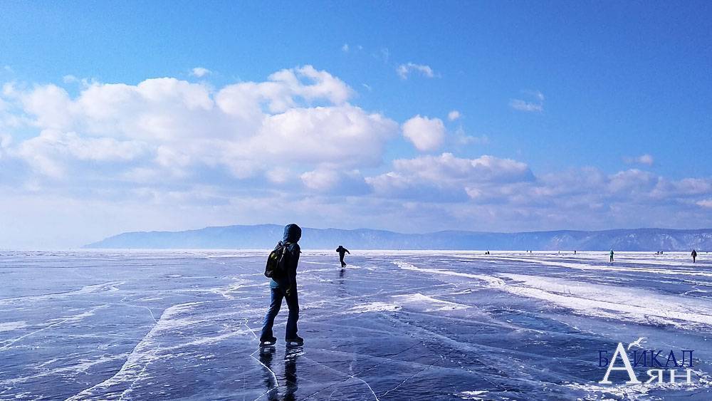 В феврале и начале марта самый крепкий лед.И, конечно же, главное развлечение – это прогулки по льду Байкала. Эта зима выдалась очень малоснежная и поэтому лед чистый и лишь у берегов скапливается небольшой слой снега.