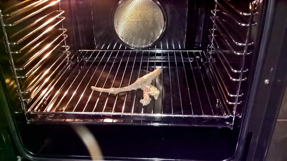 - Выбранное дерево обдирают и ошкуривают так, чтобы не оставалось коры. Если дерево не достаточно жесткое, то его прокаливают в духовке на протяжении 6-12 часов при 200+ градусах. Эта процедура выгонит соки, эфиры и смолы.