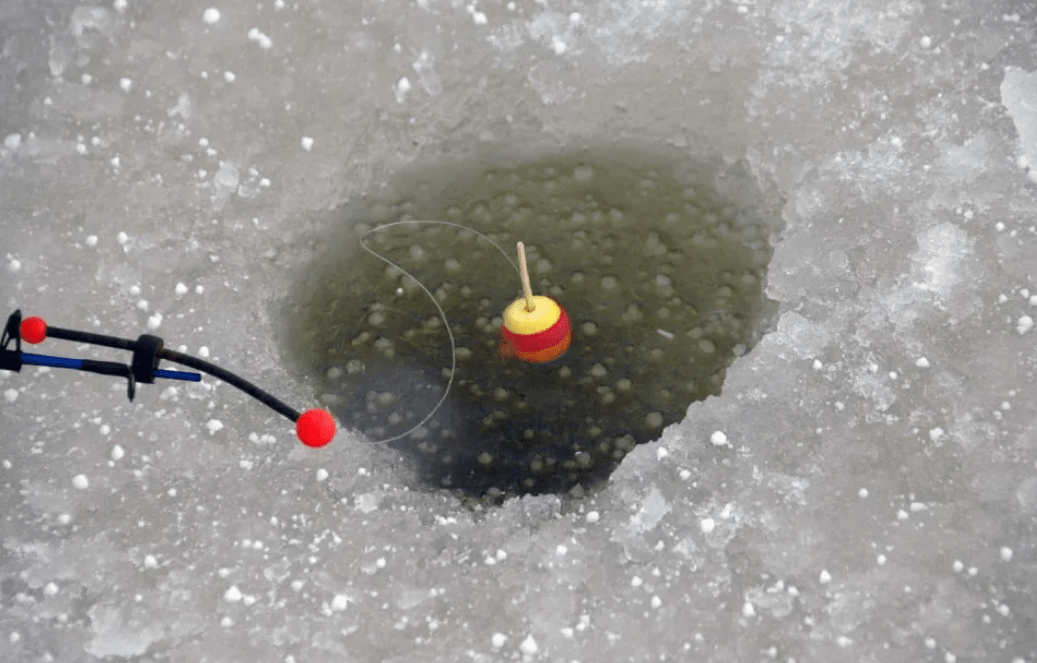 - Во льду проделывают одну или несколько лунок, очищают от мелкого крошева.