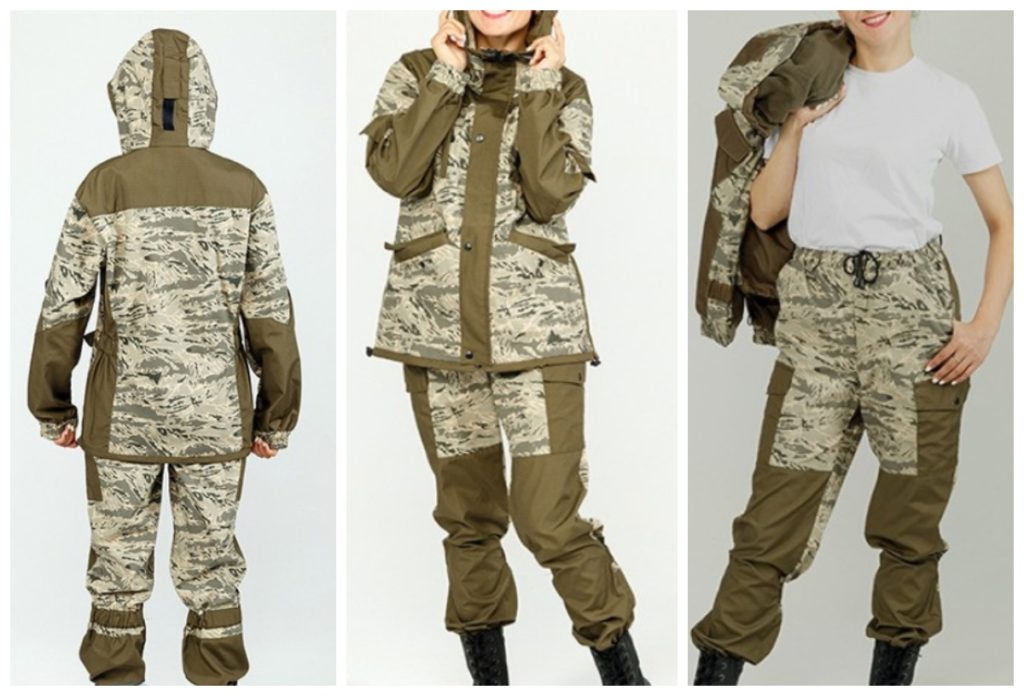 Комплект состоит из куртки с пятью карманами. Брюки имеют крепления для подтяжек и шесть карманов. Они все снабжены клапанами, застёгивающимися на пуговицы. Прочная фурнитура и нитки, пуговицы не отсвечивают. Утягивающие вставки на брюках и манжетах от парусирования. Накладка на передние пуговицы защищает от ветра. Капюшон с высоким застёгивающимся воротом затягивается и хорошо защищает от дождя. Если не знаете, какой летний костюм Горка лучший, то именно этот вариант, выполненный из палаточной ткани или тонкого брезента, станет отличным камуфляжем для охотников и рыболов. Большое количество карманов упростит переноску необходимых вещей.