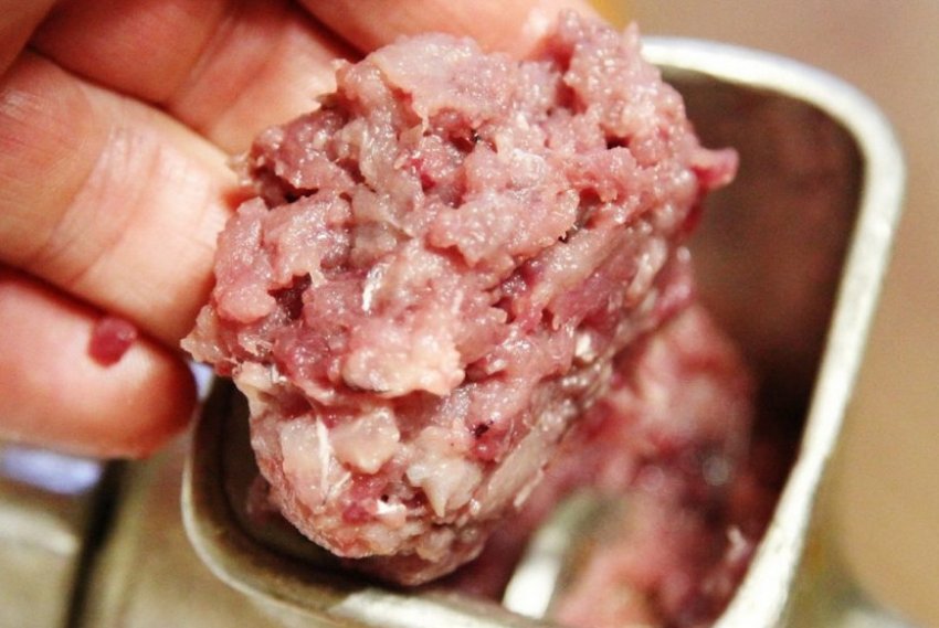 - Перечисленные ингредиенты пропустить через мясорубку два раза до получения однородной консистенции.