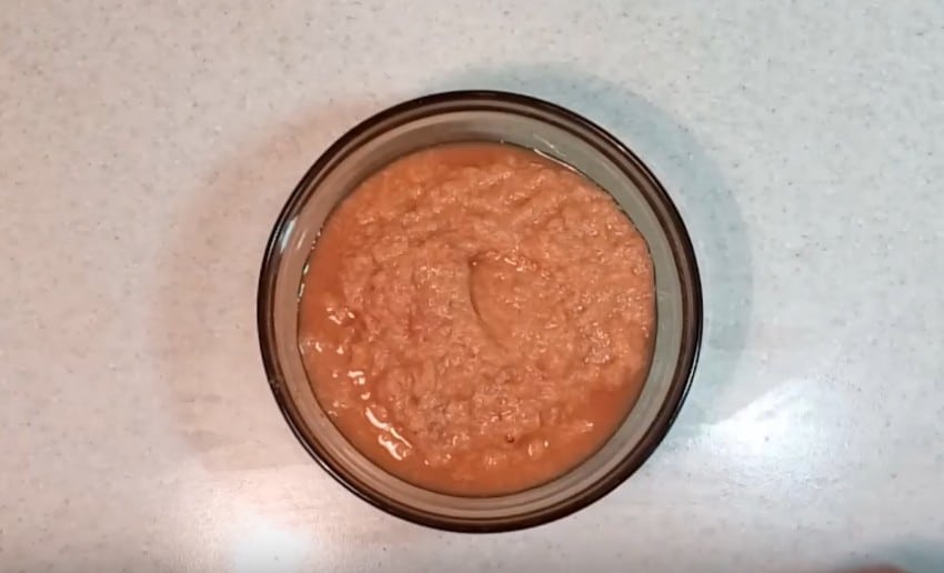 - Пасту разводят в стакане с водой и вливают на сковороду. Тушат 5 минут.