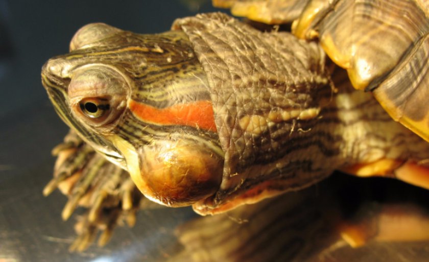 Если красноухая черепаха стала вялая, подолгу не ест и большую часть суток спит, дело может дойти до лечения пневмонии. Среди остальных ее признаков — обильные выделения из носа и рта, характерные «грудные» хрипы, неестественно задранная голова. Здесь все решает ветеринар, назначающий внутримышечные или внутривенные уколы.