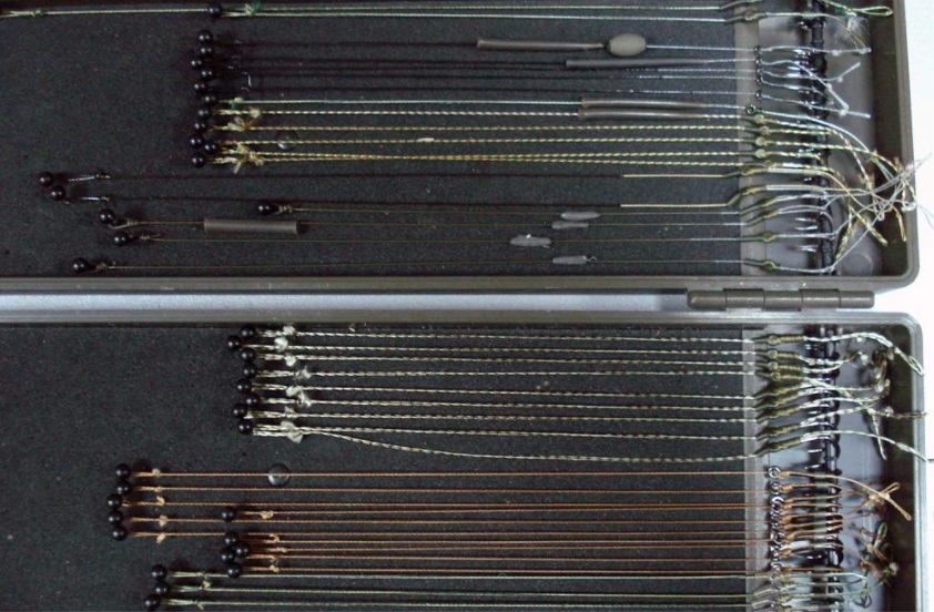 Для хранения крючков с поводками лучше всего использовать специальные поводочницы, надёжно предохраняющие крючки и леску от повреждений.