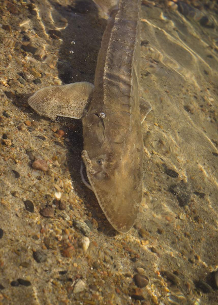 У речной рыбы желто-зеленый окрас с темными поперечными полосками, расположенных по бокам. Глаза мелкие, невыпуклые. Продолжительность жизни этих обитателей равна 15 лет. Речной вид встречается в менее крупных пресных водоемах, прибрежных участках морей. На плотно сидящей чешуе располагаются неядовитые шипы, которые могут порезать. В естественных условиях на них охотится большее количество крупных хищных рыб, цапли, выдры. Мясо речного вида более диетическое, его могут употреблять те, кто придерживается правильного питания и следит за фигурой.