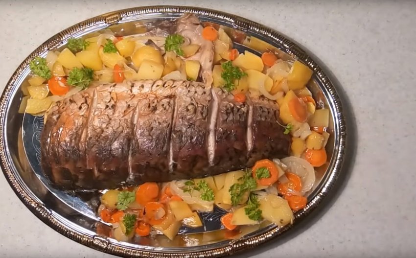 Смешать немного сока лимона и растительное масло, и смазать поверхность сазана. В этом случае мясо будет получаться особенно нежным и сочным.