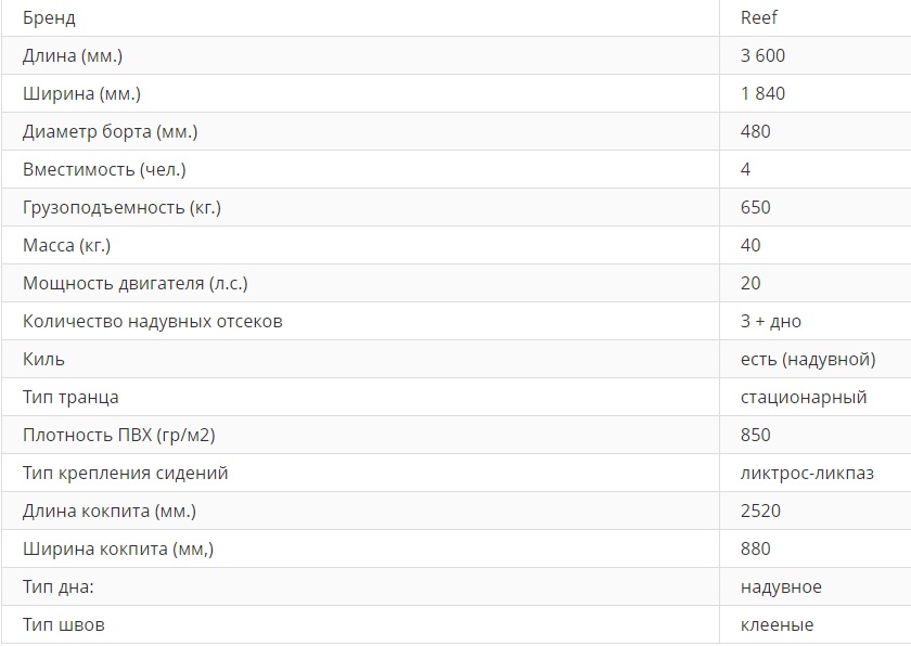 Надувная лодка Reef (Риф)Тритон 360 F НД: характеристики