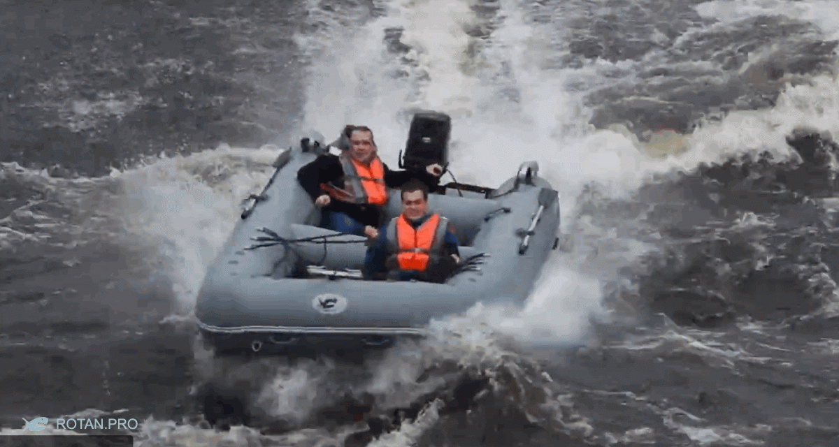 Устойчивость. Лодку практически нереально перевернуть на ходу, в поворотах, или во время рыбалки взаброс, из-за того, что она стоит на скегах. Из-за большого размера волна от любых встречных плавсредств на представляет для Ротана никакой проблемы — проходить ее можно в любом направлении.