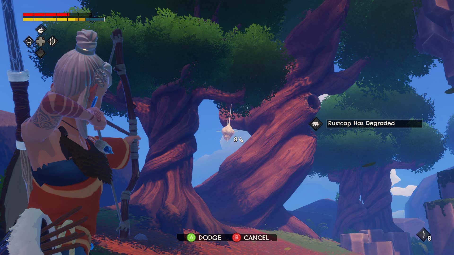 После того, как вы приобретете или создадите лук, вы сможете стрелять в диких животных для получения еды и материалов. Если вы будете удерживать тетиву натянутой в течение нескольких секунд, на двух концах лука появится светящийся свет. Это индикатор, который позволяет узнать, что ваша атака будет более мощной, когда вы отпустите стрелу.