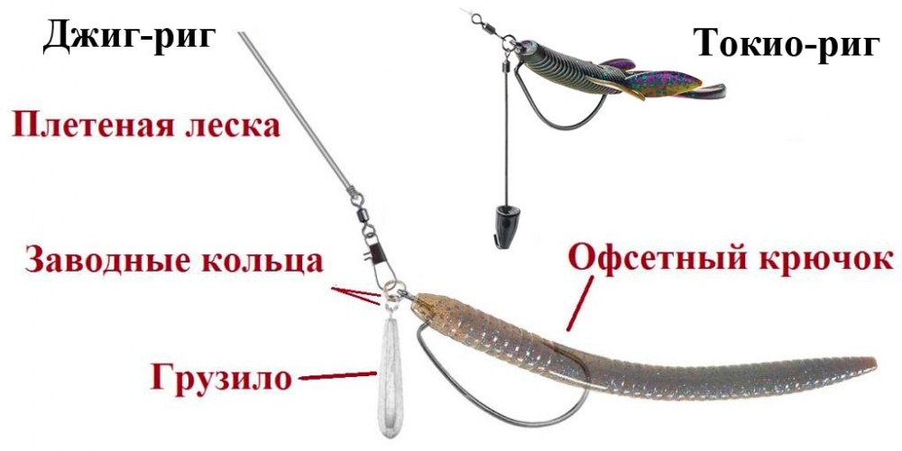 Прежде всего, следует обратить внимание на такие оснастки, как «джиг-риг», «токио-риг», «каролинская», «отводной поводок»