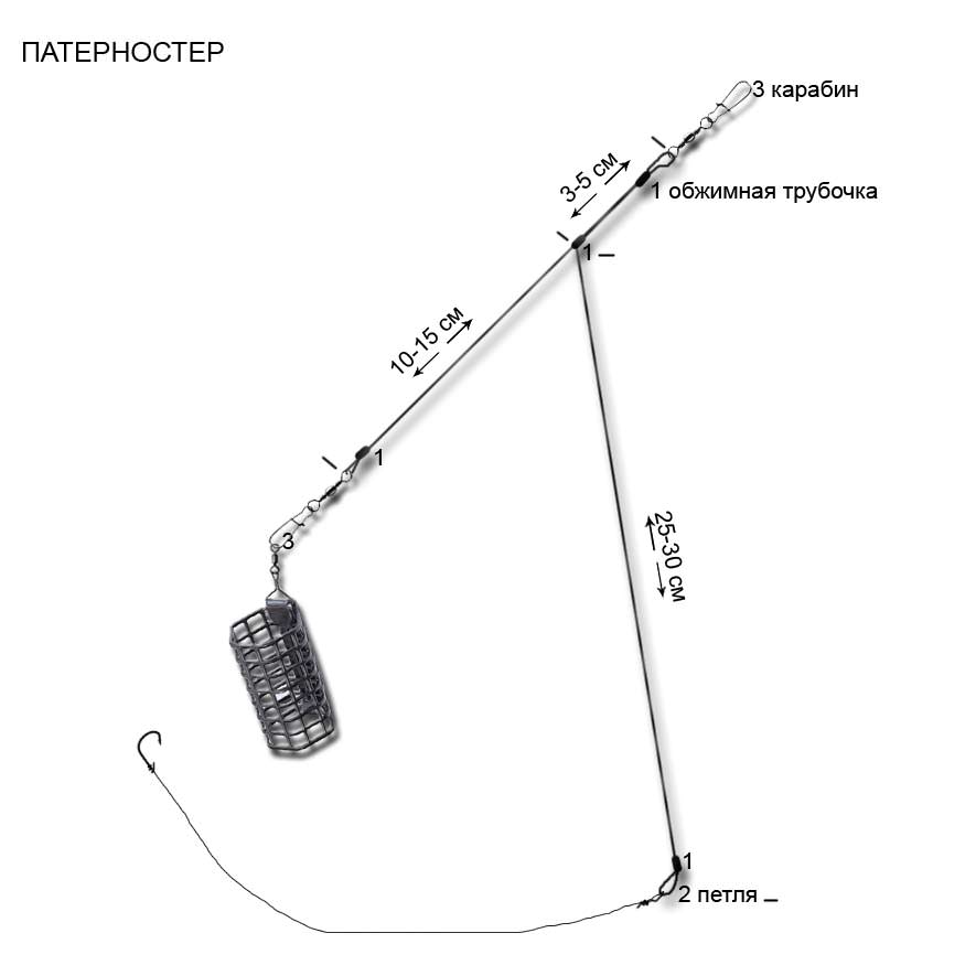 - Патерностер. Обладает высокой чувствительностью, но при этом может использоваться для ловли рыбы у илистого дна.