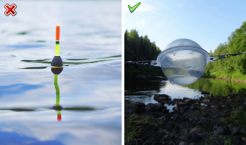 - на быстром течении хорошо использовать круглые либо каплевидные формы, а на медленно текущей воде — более вытянутые приспособления.