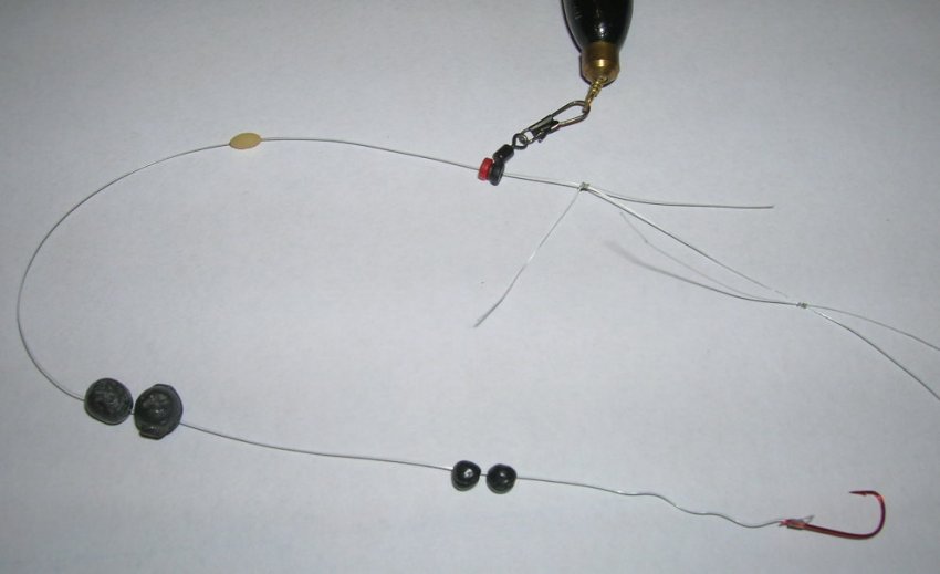 - при ловле в верхних слоях воды достаточно одного небольшого грузила.