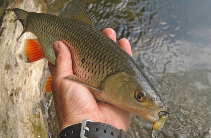 - Голавль. Это весьма осторожная рыба со своеобразными пищевыми предпочтениями. Он может долго наблюдать за приманкой, прежде чем решится на атаку. Для его добычи применяют миниатюрные воблеры до пяти сантиметров длиной. Как правило, это имитации насекомых (в частности, майского жука), а также небольшие плоские «рыбки».