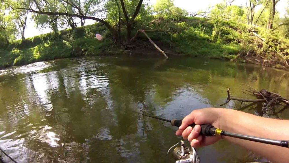 -  Ловля на перекатах. В таком случае заброс приманки нужно осуществлять поперёк течения:- на снос;