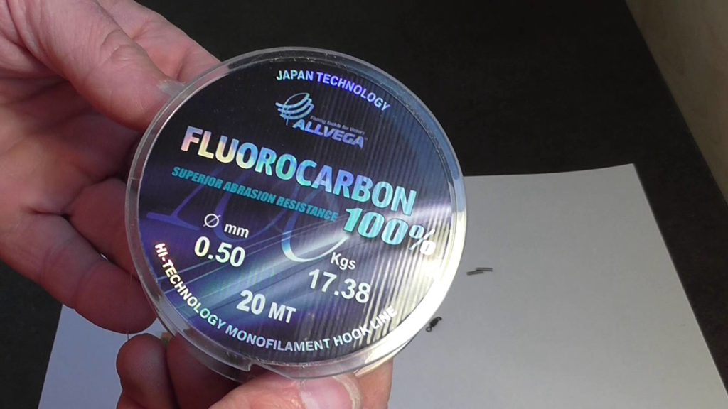 Флюрокарбон – прозрачная практически незаметная в воде леска, низкая прочность по сравнению с другими типами. Используют как отрезок лески в оснастках непосредственно крепящийся к приманке (поводок), чтобы рыбу не пугала леска и в случае обрыва – рвался именно поводок с приманкой, а не основной шнур где-нибудь посередине.