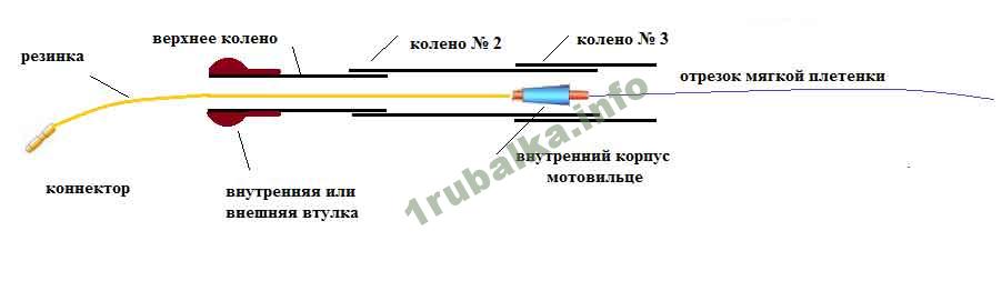 Для ловли небольших и средних карасиков, применяется глухое крепление лески к коннектору, расположенному на кончике удилища. Маховая удочка не имеет пропускных колец, соответственно и катушка в данном способе ловли не используется.