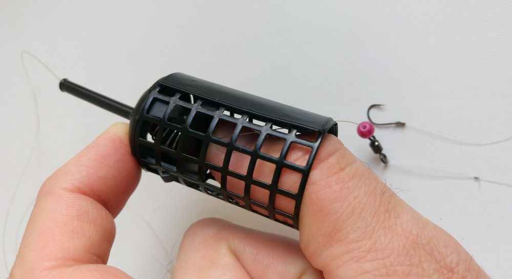Первый вид применяемых кормушек – цилиндрическая металлическая сетка без груза массой до 10 гр, либо с подгрузкой аналогичной массы, но пластиковая. Они хорошо и, главное, точно приводняют фидерную оснастку в самые компактные «окна». Но еще важнее, что оснастка затем ложится на растительные заросли того же хвоща, не «прошивая» их. Поводок – длиной 20 – 30 см.