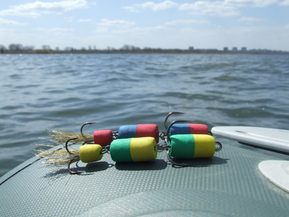 - В магазине для детей продаётся множество изделий, которые изготовлены из специального материала – пенополиуретана. Такой материал подходит для наших целей, потому что он мягкий, плотный и имеет положительную плавучесть. Покупая изделие, желательно заранее обдумать будущую цветовую гамму приманки. Если в продаже мы не найдем подходящую цветовую гамму, тогда можно самостоятельно добиться желаемого цвета. Нужно нарезать части, а потом склеить их в одну заготовку обыкновенным клеем (момент).